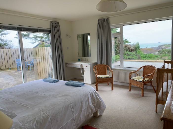 Newland sleeps eight and is a spacious family house that has a relaxed feel with views overlooking Harlyn Bay which is a family and dog friendly beach.