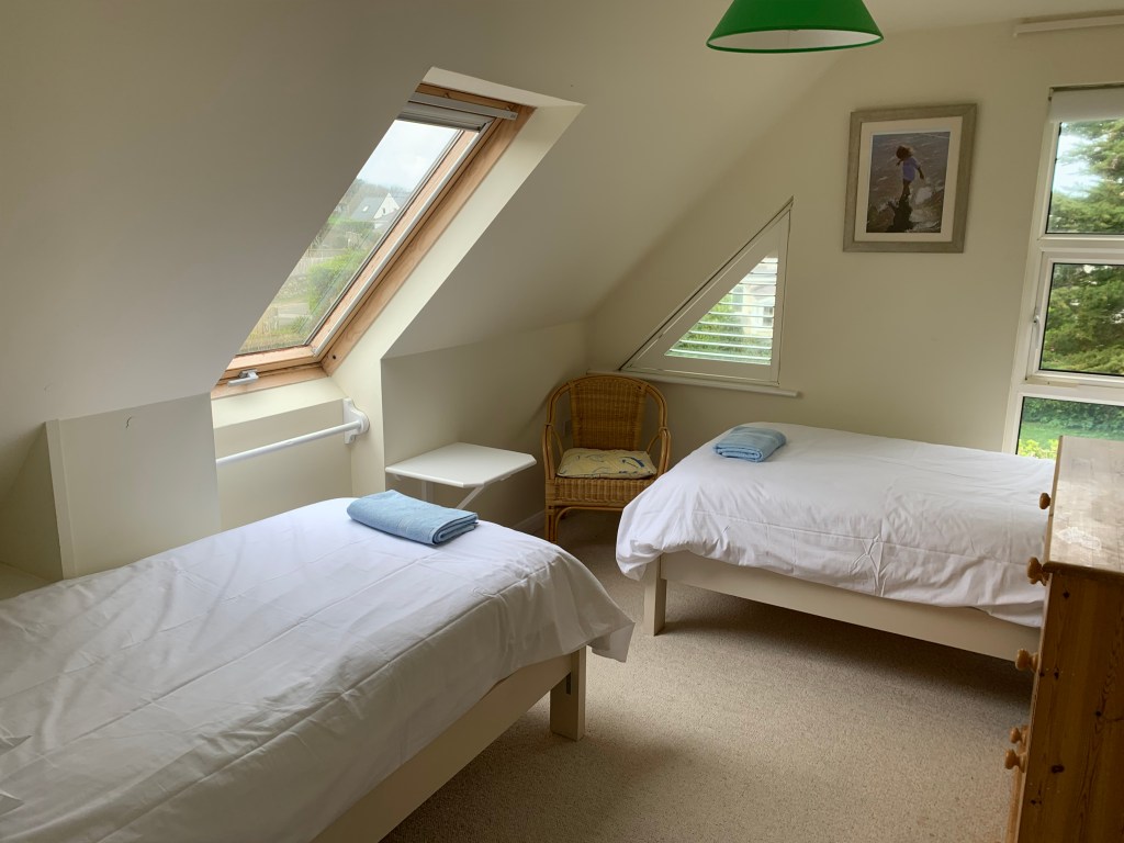 The accommodation consists of one double and three twin bedrooms, one upstairs bathroom and a shower room downstairs. The large upstairs living room overlooks the bay and there is a generous size family kitchen that lead onto a terrace.